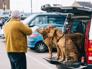 Dogs wait to be fed